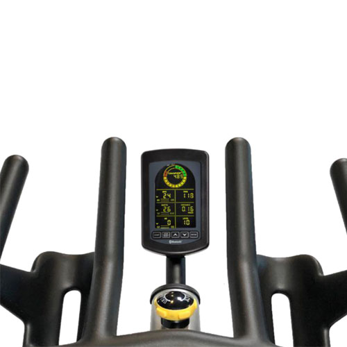 - Встроенная LCD-консоль выводит информацию о 13 параметрах: мощность (ватт), время, расстояние, калории, частота вращения педалей (RPM), пульс (при использовании нагрудного датчика), максимальная частота вращения педалей, максимальная мощность, максимальный ЧСС;