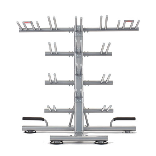 Удобная система хранения аэробных штанг G2 SMARTBAR. Вмещает 12 комплектов. Замки для безопасного хранения штанг не входят в стандартную комплектацию стойки.